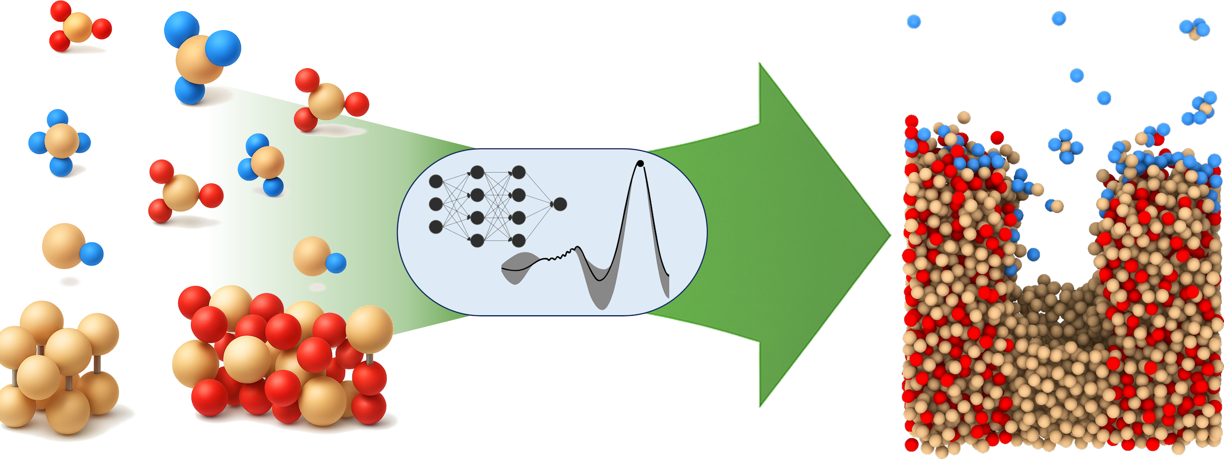 - Ion-surface interactions, such as predicting etching and sputtering yields during plasma processing, where ML-IAPs capture the complex response of surfaces to energetic particle bombardment.