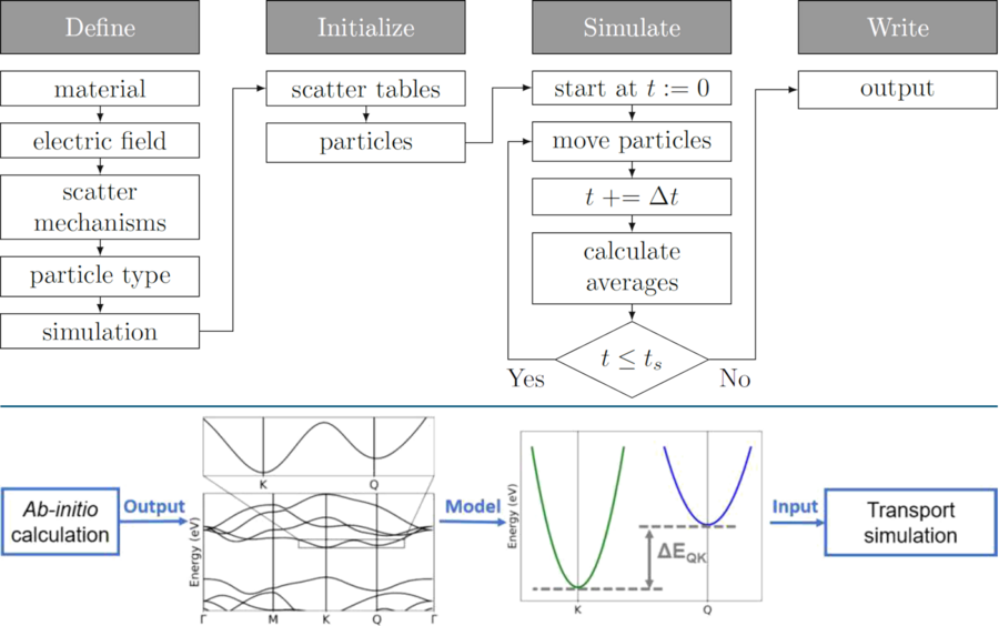 Charge Transport Modeling: We utilize our in-house Ensemble Monte Carlo simulator, ViennaEMC, to study phonon-limited electron transport and calculate charge carrier mobilities in these novel materials.
