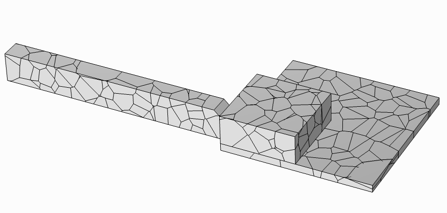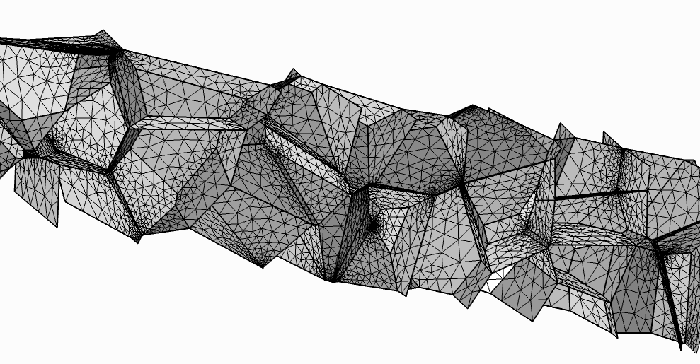 Fig. 2: Grain boundaries used for simulative studies of gold interconnect reliability meshed with a fine finite element mesh.