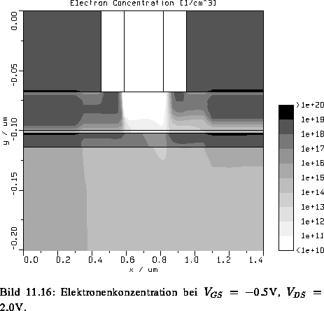 Die Elektronenkonzentration (Bild 11.16) in der Mitte des