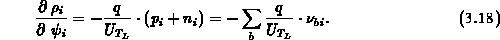Weil die rein exponentiellen Abhängigkeiten nicht völlig korrekt sind (das wären sie nur ohne Stromfluß und mit allen Ladungsträgern auf Gittertemperatur), wird die Gleichung 3.20 die Änderungen in den Ladungsträgerkonzentrationen und in der Raumladung nicht genau antizipieren. Trotzdem macht diese Modifikation oft das entkoppelte Lösungsverfahren überhaupt erst konvergent. Die Zusatzterme in 3.20 stärken nämlich die Diagonale des Gleichungssystems und vermindern damit ein Überschwingen der Lösung für das Potential.