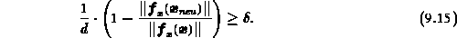 gewählt wird, die Subtraktion also erst nach der Normenbildung erfolgt. Das bewirkt eine unterschiedliche Bewertung der Anteile des nichtlinearen Vektors. Anteile, die eine zusätzliche Verkleinerung der Norm bewirken, die dem Zustreben zur endgültigen Lösung also förderlich sind, bewirken eine Verkleinerung des Ausdrucks (9.13), und nur die Anteile der Gegenrichtung vergrößern diesen Ausdruck. Dagegen wirken in (9.12) alle nichtlinearen Anteile vergrößernd, und führen daher zu stärkerer Dämpfung.