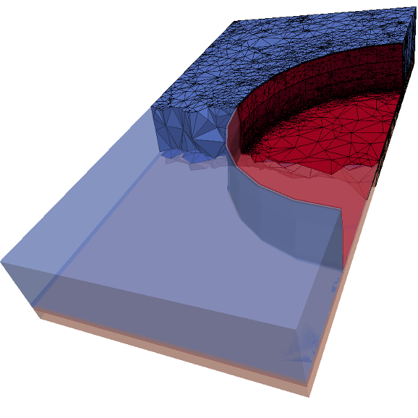 Fig. 1: TSV device, meshed with small element size in the areas of interest.