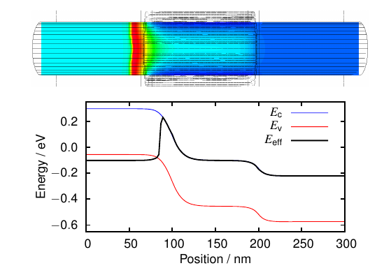 Fig. 1: BTB effective tunneling barrier for an InAs NW Tunneling Field-Effect Transistor (TFET).