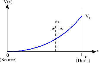 course for any given drain voltage, the voltage along the channel increases from zero at the