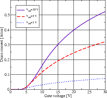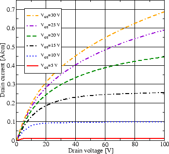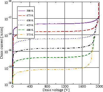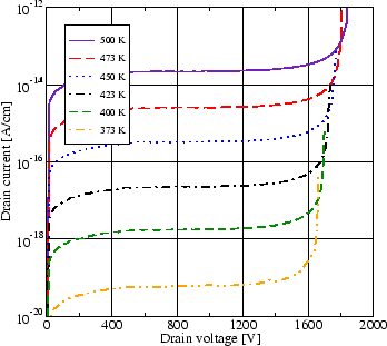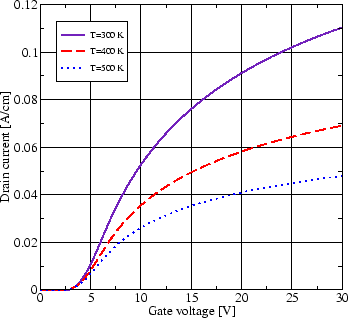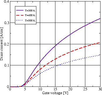 characteristics of the DMOSFET for the temperatures of 300 K and 500 K. It has been stated in