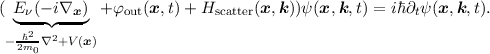where ψ(x,t) is now a single electron wave function representing the whole ensemble of electrons, φout(x,t) is the external electrostatic potential and all other particle-particle interactions have been summarized in Hscatter. In order to obtain a semi-classical approximation in the special case of a periodic lattice Equation (2.2) has to be transformed such that the potential of the ions does not explicitly appear in the equation. This is done by solving Equation (2.2) without any scattering Hscatter and time dependence [13, 12],