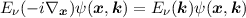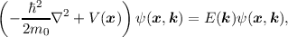 and inserting the solution back into Equation (2.2), where the reciprocal wave vector k and the ionic potential V (x) (jellium-model for semiconductors) have been introduced [12, 14]. A solution ψ(x,k) to Equation (2.3) is easily obtained by using plane-waves and Bloch-functions [15] to account for the periodicity in the lattice. Additionally the solution to Equation (2.3) gives the relation Eν(k) for the νth band. Eν(k) is often referred to as the dispersion relation and is only dependent on the type of semiconductor. By introducing the operator Eν(-i∇x), where