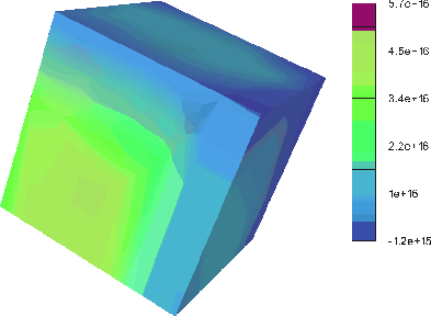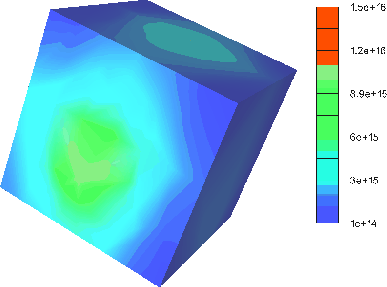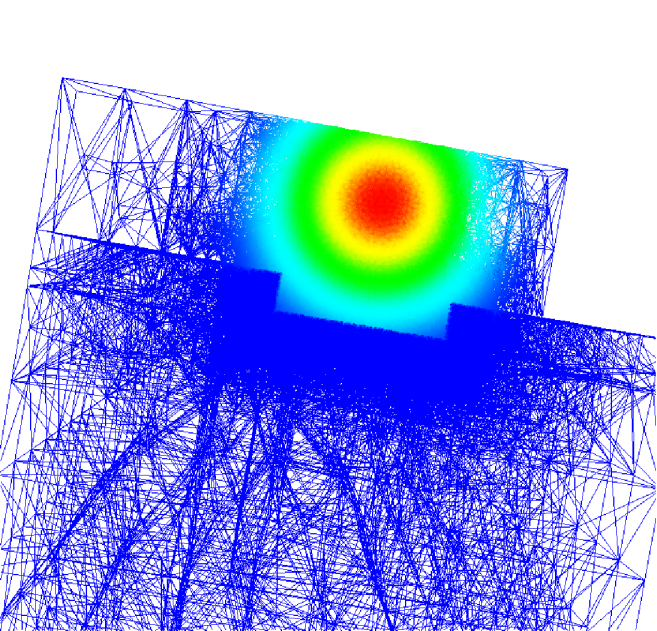 The second example demonstrates the locality of the implemented refinement algorithm. Fig. 4.12 displays a part of the schematic transistor cell of Fig. 4.4. The aim of this example was to locally refine the gate region. To achieve this local refinement all edges within a rectangular region around the gate were marked for refinement. Fig. 4.13 depicts the final mesh after the refinement was performed. The locality of the refinement algorithm is clearly visible.