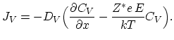 The model transport equations can be expressed in terms of either vacancies or atoms but in most cases [51] vacancy are chosen. The net vacancy flux along the length of the interconnect line induced by the gradient of the chemical potential and electromigration, taking into account (4.16) can be written as,