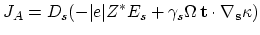 The driving forces are electromigration proportional to the local tangential component of the electric field and the chemical potential.