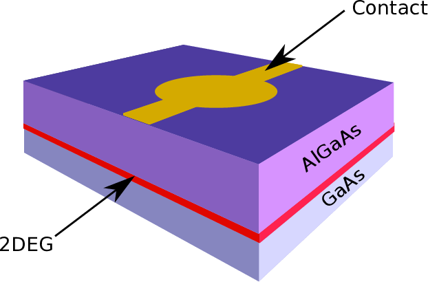 An electrostatic lens refers to a specially shaped potential with convex/concave features, similar to optical lenses, used to steer coherent electrons. The concept was first demonstrated experimentally in 1990 in [152, 153], in low-temperature, high-mobility semiconductors, which ensured that the coherent electrons had a sufficiently long mean free path to conduct experiments with structures made with the lithographic capabilities at that time. An experimental realization of the electrostatic lenses is illustrated in Figure 6.1.