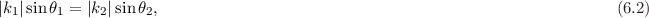 is the angle of incidence (refraction) with respect to the normal of the interface. The magnitude of the wavevector is proportional to the square root of