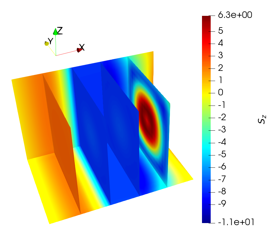lies in the direction defined by \(\vb {m}\times \pqty {\vb {m}\times \vb {p}}\). In the present simulation, it lies along the y-axis. The field-like component, also referred to as non-adiabatic component, is perpendicular to
