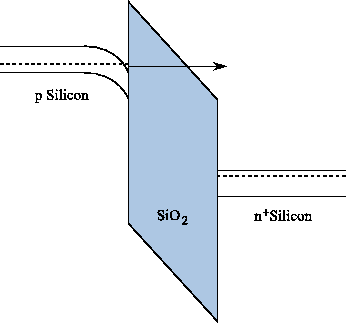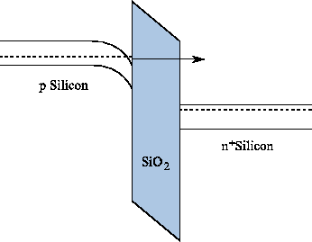 semiconductor through a dielectric, which represents an energy barrier, to the