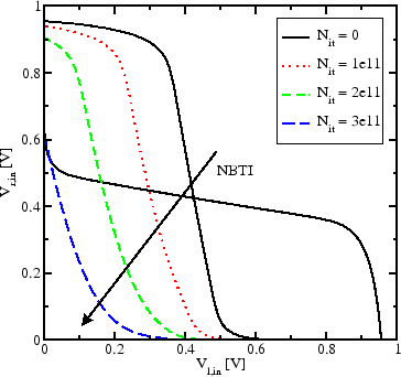 Assumed degradation of both p-channel MOSFETs results in shift of the VTCs of