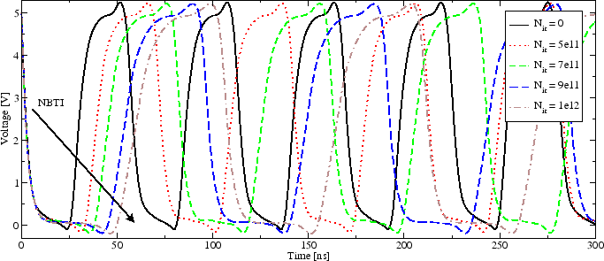 threshold voltage shift due to NBT stress the circuit's oscillation frequency
