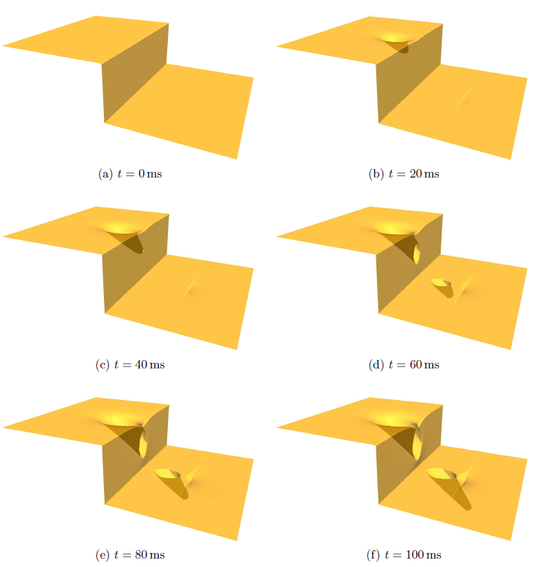 As a second example, the time evolution of a plain surface, which is processed by a normal incident FIB as described in [57], is calculated. The beam is moved over