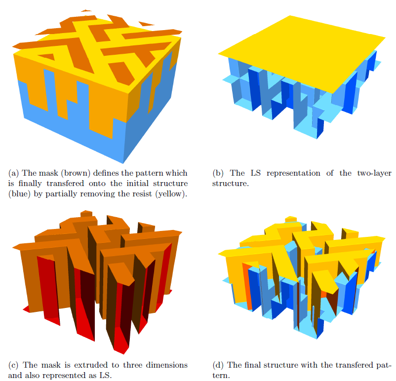 Boolean operations using level sets can be applied to describe pattern transfer.