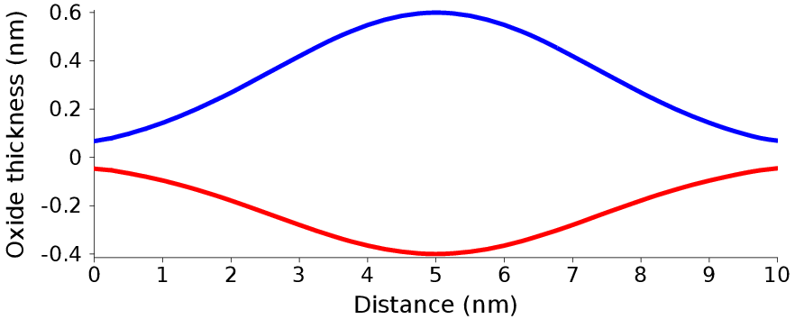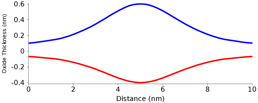 Some literature approximate the final oxide dot topography with a Gaussian curvature [162], while some suggest a
