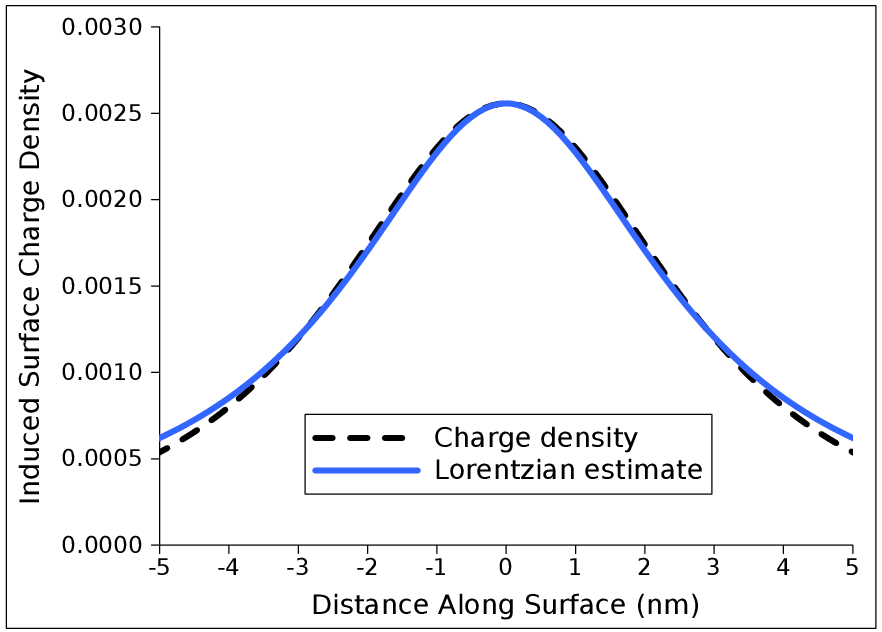 (a) Comparison between the Gaussian distribution and the surface charge density and (b) comparison between the