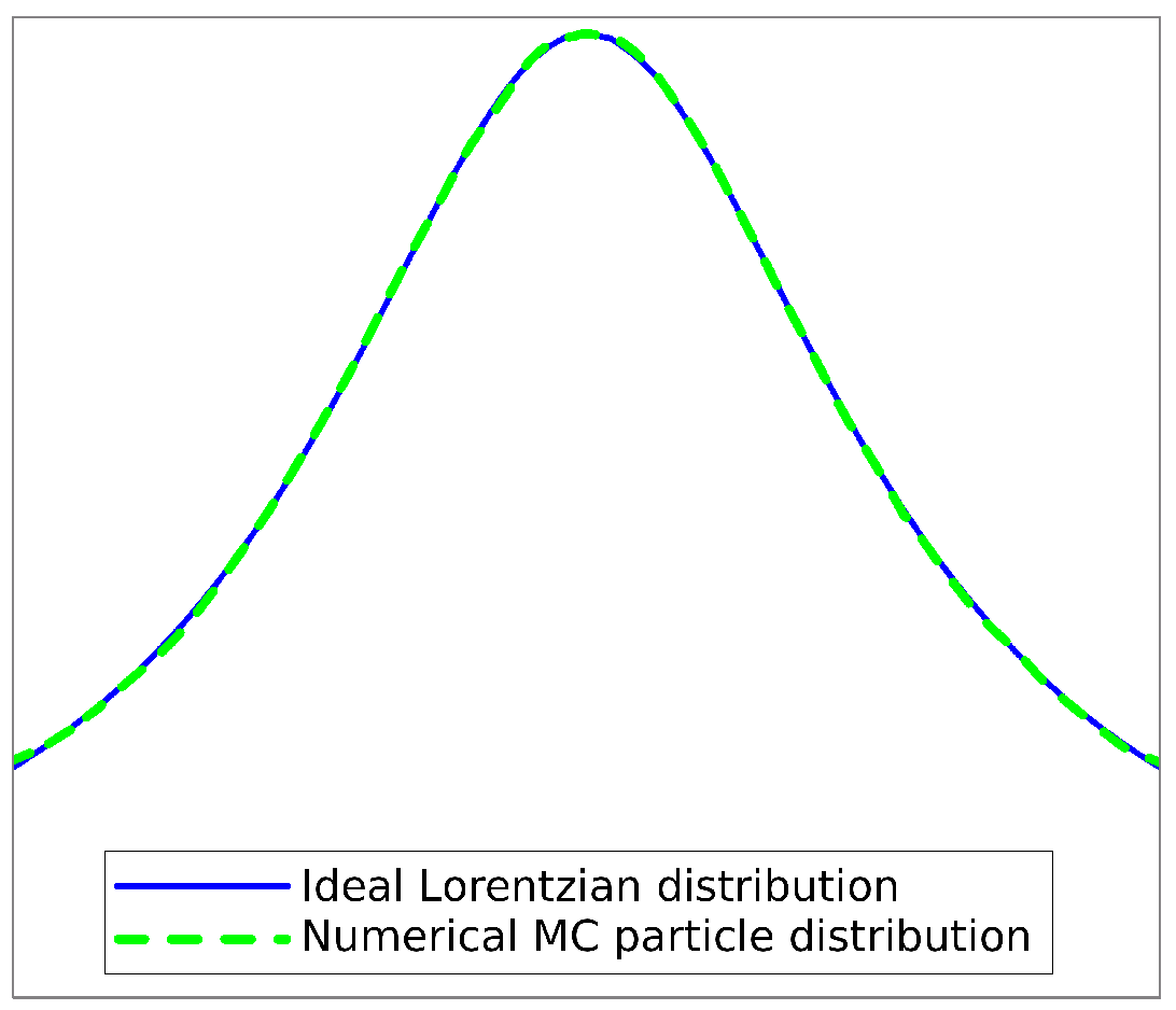 particle can be generated to follow the Lorenzian distribution by first generating an evenly distributed value for