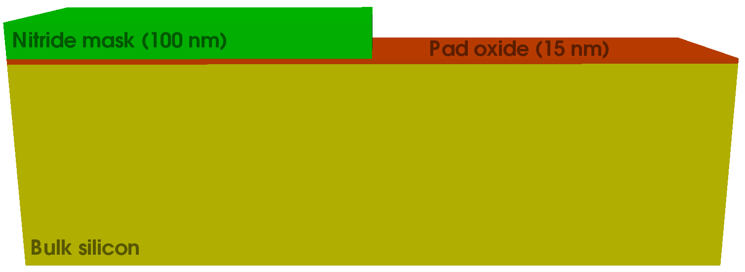 nitride mask, which is meant to block the oxide from growing everywhere, is slightly bent due to stress caused by the