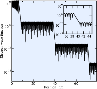 modeled with a barrier height of 5eV and a conduction band offset of 2eV