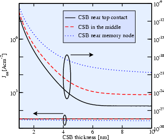 thin dielectric layer. In the on-state the energy barriers are heavily reduced