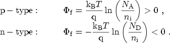 Fig. 3.7 shows the band diagram and the electrostatic potential in a metal-oxide-semiconductor structure for different voltages at the metal contact [108,109,110]. A central quantity is the work function which is defined as the energy required to extract an electron from the FERMI energy to the vacuum level. The work function of the semiconductor is