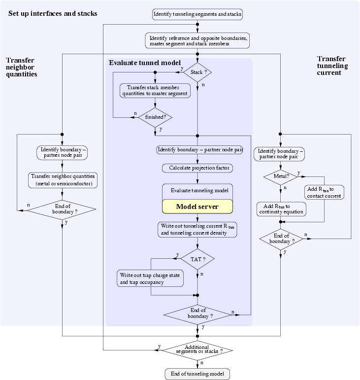 A flow chart of the tunneling model in MINIMOS-NT is shown in