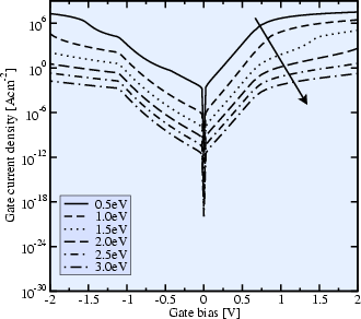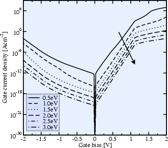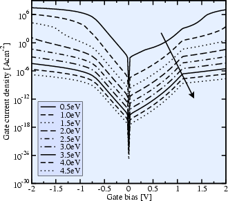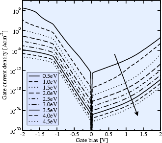 barrier height of about 3.2eV and a hole barrier height of approximately