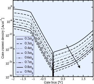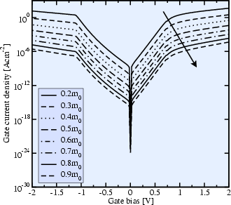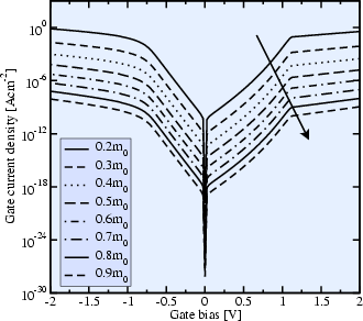 to a reduction in the gate current density by about a factor of 10. It must,