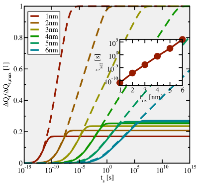 the dielectric. As pointed out in the inset, this time point of saturation is moved