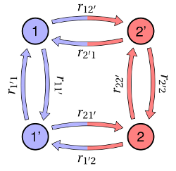 The defect in the eNMP model has a state diagram as shown in Fig. 7.3. With the rates (7.36)-(7.47), the defect kinetics are described by