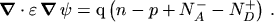 By summarizing POISSON's equation (2.38), the current continuity equations (2.39) and (2.40), and the current relations (2.35) and (2.36), the set of basic semiconductor equations is obtained. This set of equations was first presented by VANROOSBROECK in 1950 [10].