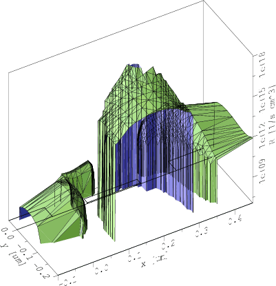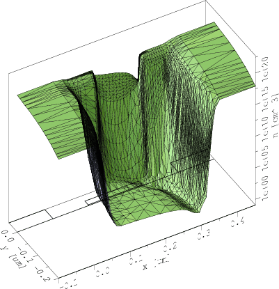 Electron concentration in the SOI (Device 1) obtained by a drift-diffusion