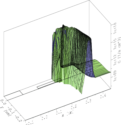 SRH net-generation in the SOI (Device 1) obtained by a drift-diffusion
