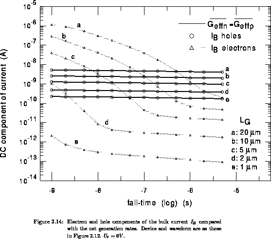 In this section we studied the geometric component by means of numerical two-dimensional transient model of MOSFETs. After each transient simulation, the DC component of the net generation rates and the terminal currents is calculated for the periodic-steady-state conditions. Comparing the DC components of these quantities the geometric current component can be easily extracted. Such an approach represents a unique method to clarify the geometric component in detail [169]. We have studied bulk MOSFETs and SOI devices [192][169]. In this work, we focus on the bulk MOSFETs.
