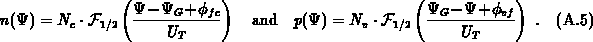 Employing Fermi-Dirac (FD) statistics and position-dependent band-gap narrowing the carrier concentrations can be expressed within the rigid-parabolic-band model by