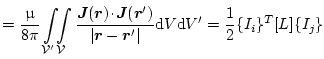 ...criptstyle r$}}'\vert} \mathrm{d}V \mathrm{d}V' =\frac{1}{2}\{I_i\}^T[L]\{I_j\}$](img226.png) |