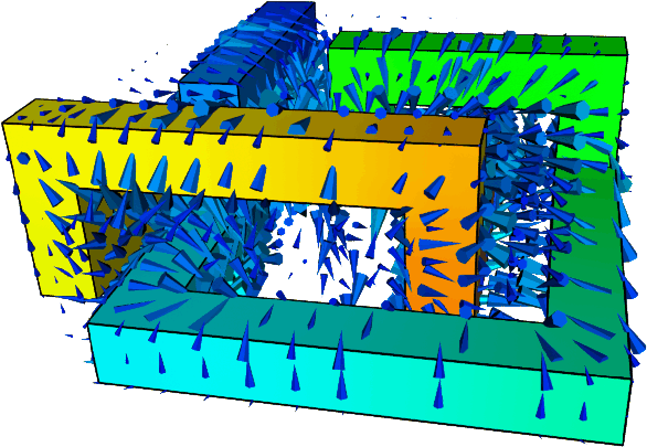 Darstellung des Vektorpotenzials: Die Kegel geben die Größe und Richtung des