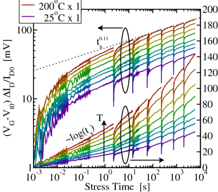 The conventional explanation of the resulting degradation uses elastic hole trapping due to tunneling carrier exchange with the substrate (initial degradation) [84, 11] and the creation of interface states (long-term degradation) [94, 104]. While [94, 104] claim that processes in the short-time scale show a negligible temperature dependence, the latest results support a thermally activated tunneling mechanism [98, 78, 105] (cf. Chapter 5).