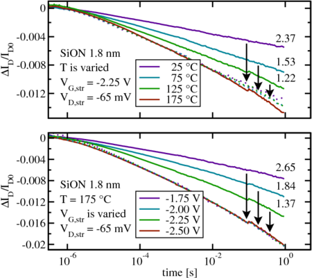 various stress voltages at equal temperatures, while different temperatures