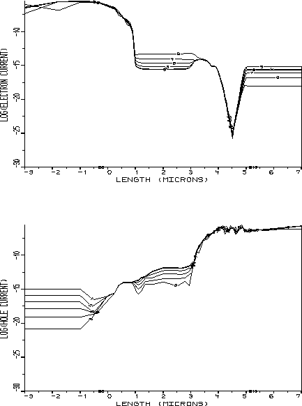Abbildung: Elektronen- (oberes Bild) und Löcherstromdichten (unteres Bild)