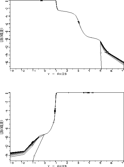 entweder nahezu konstant gleich Eins oder fast Null,