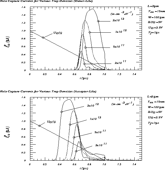 Abbildung: Löcher-Rekombinationsströme für donator- (oberes Bild)