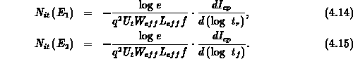 was schließlich auf die erwünschten praktischen Formeln für die Störstellendichte in beiden Hälften des verbotenen Bandes [34] führt: