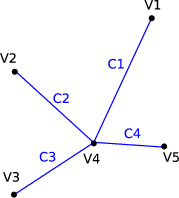 Another important representative of a commonly used cell complex is a one-dimensional complex, usually called a graph. Figure 7.5 shows a typical example. A cell of this type of cell complex is called an edge. Incidence and adjacence information exists between edges and vertices.