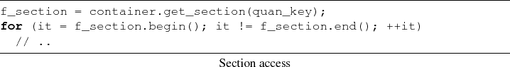 As can be seen, the traversal mechanisms are implemented very closely to the grid_types. The random_access property cannot be used by all traversal operations. This complicates the optimization and performance steps related to application design. The next code snippet presents the GTL implementation. It should be noted that the GTL interface can easily be implemented using the GrAL.